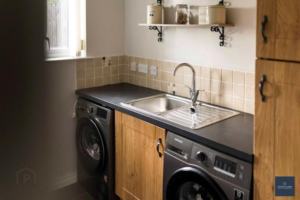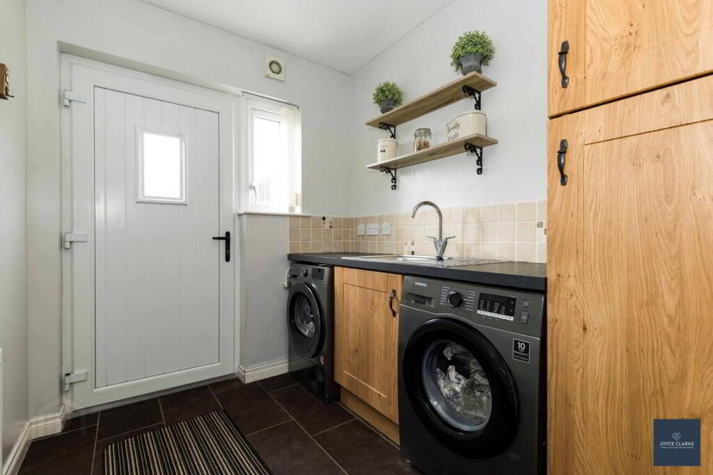 UTILITY ROOM 2.05m x 2.40m (6' 9" x 7' 10") Low level units with additional larder style unit. Stainless steel sink and drainage unit. Space for washing machine and tumble dryer. Tiled flooring and splashback. Single panel radiator. Extractor fan. UPVC door with glazed panel giving access to rear garden