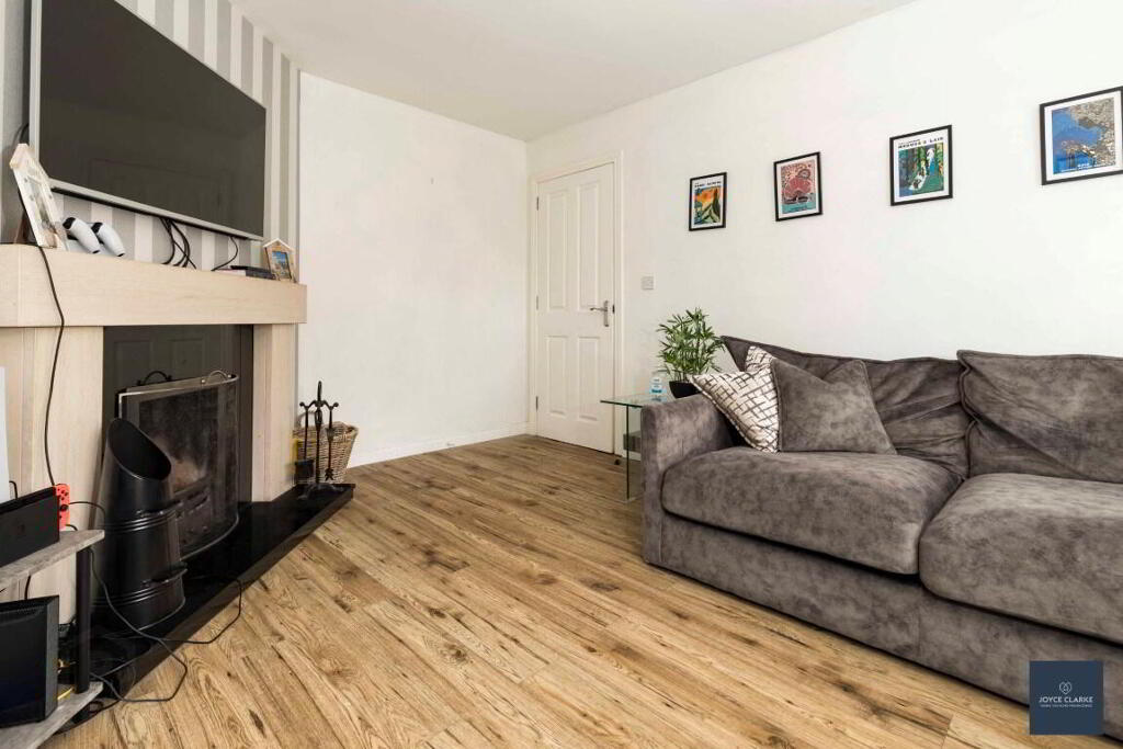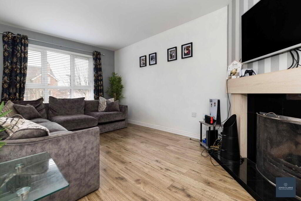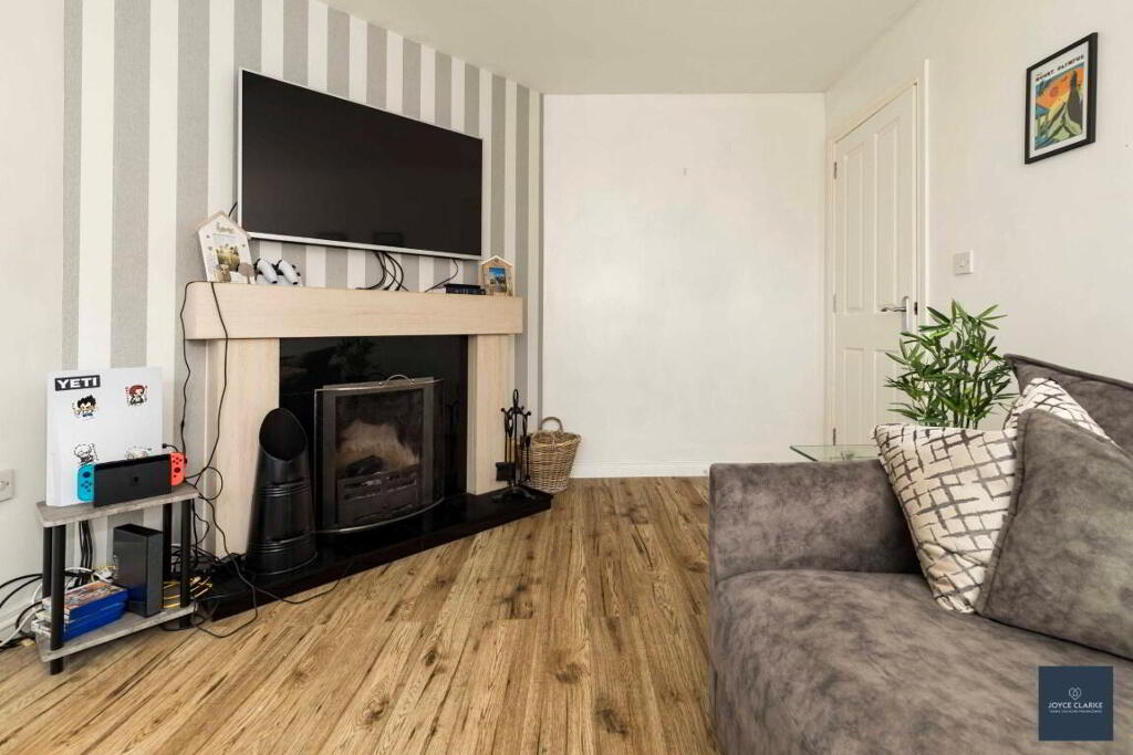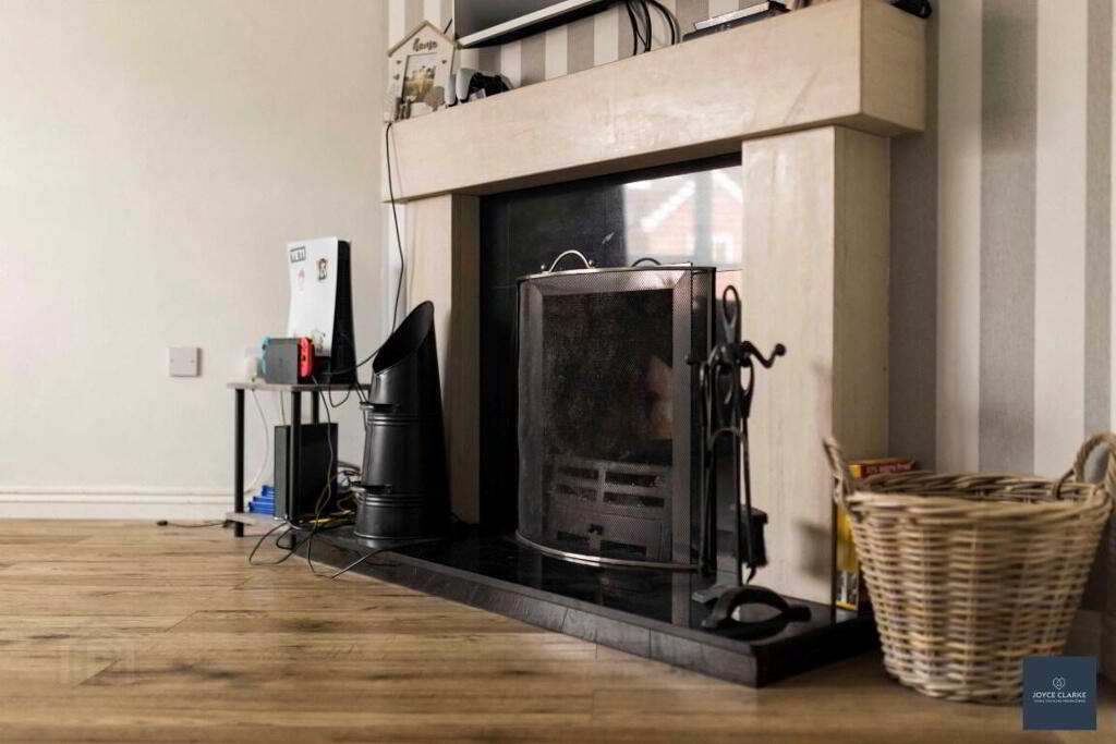 LIVING ROOM 3.22m x 4.94m (10' 7" x 16' 2") Front aspect reception room including feature open fireplace with stone surround and granite hearth. TV point for wall mounted TV. Wood effect laminate flooring. Double panel radiator.