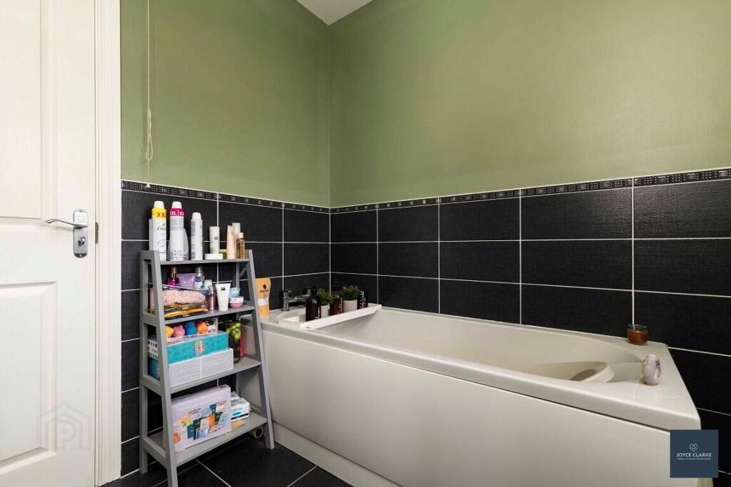 FAMILY BATHROOM 2.20m x 2.19m (7' 3" x 7' 2") Three piece bathroom suite comprising of panel bath, dual flush WC and wash hand basin with pedestal. Single panel radiator. Tiled flooring and half tiled walls. Single panel radiator. Extractor fan.