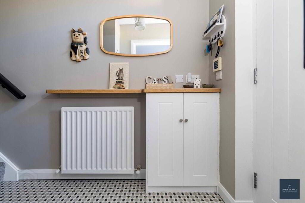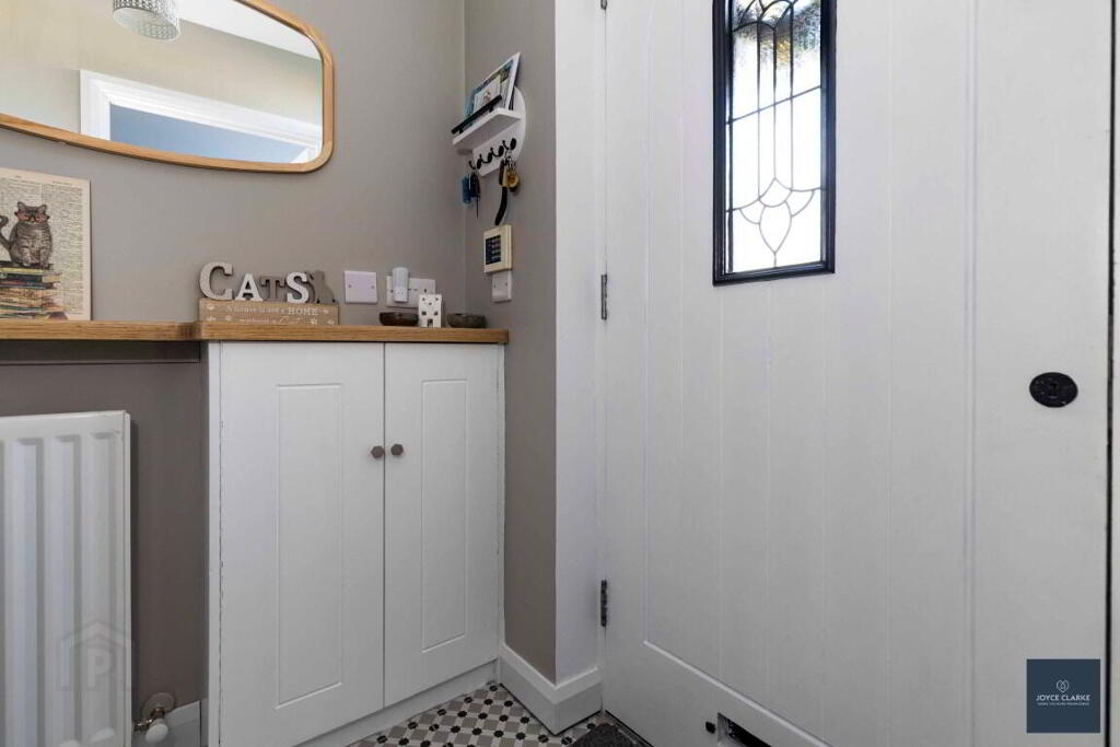 ENTRANCE HALL Solid wood entrance door with feature glazed panel. Tiled flooring. Single panel radiator. Alarm panel.