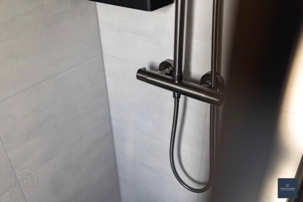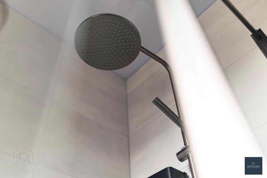 FAMILY BATHROOM 2.10m x 1.82m (6' 11" x 6' 0") Impressively modernised Bathroom recently fitted, includes large shower quadrant with mains fed shower with rainfall showerhead and additional showerhead, back to wall dual flush WC, wall hung wash hand basin with vanity unit below and additional wall hung storage cabinet. Vertical radiator. PVC panelled ceiling. Recessed lighting with integrated extractor fan. Fully tiled walls and flooring.