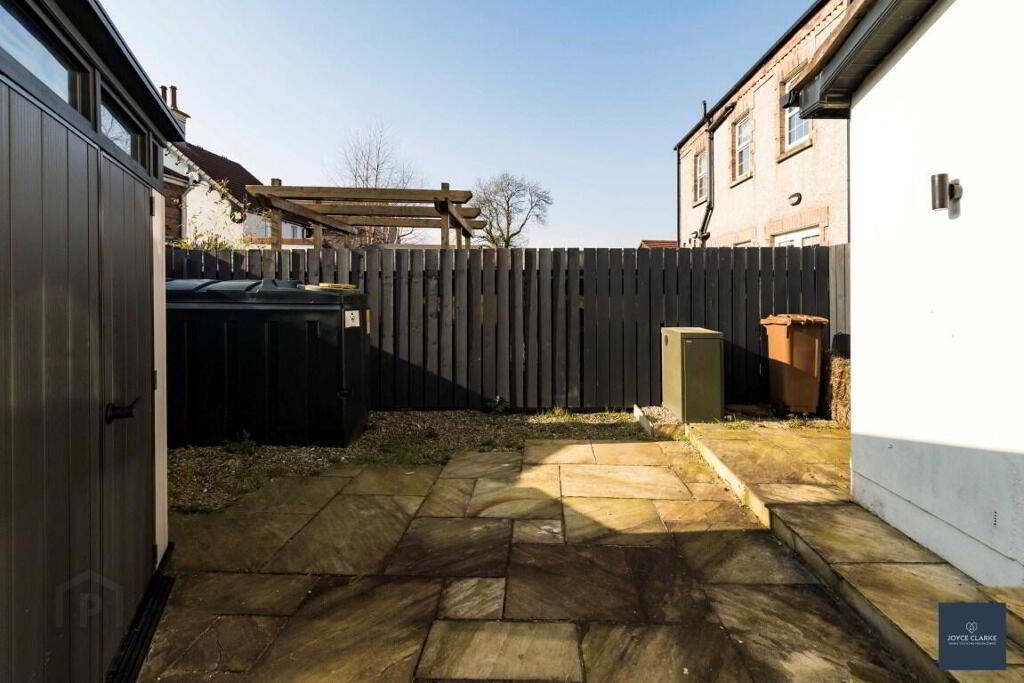 REAR GARDEN Low maintenance fully enclosed rear garden. Gated access to passage leading to front. Majority of garden laid in stone paved patio. Decorative stone area. Oil fired burner and oil tank. Outside tap and lighting.