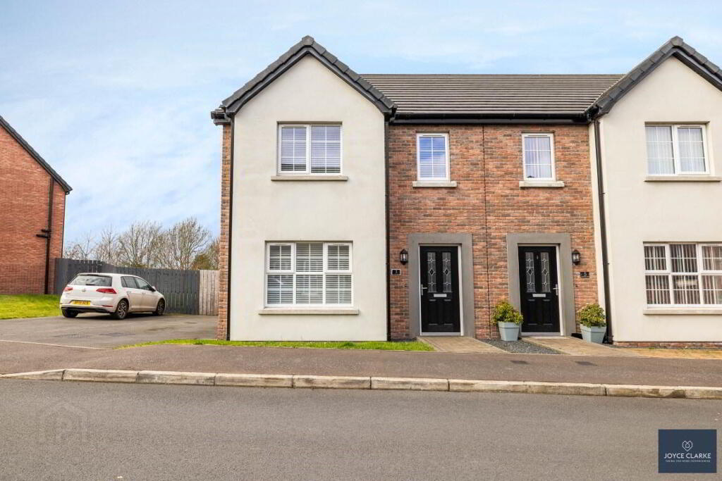 Welcome to 3 Drumford Close, Portadown! We are delighted to bring this beautifully presented modern semi detached home to the sales market, and we know it will tick all the boxes for you. Step inside and you will find a welcoming hallway with great natural light and high ceilings to give the feeling of space. The front aspect living room is a great size and has a wall mounted electric fireplace as a focal point. The open plan kitchen dining is really well laid out with an abundance of sleek storage units complimented by integrated appliances. There is plenty of room for your dining table and sofa, and sliding patio door brings you out onto the garden. A WC completes the ground floor. Upstairs there are three well proportioned bedrooms, the master benefitting from an en suite shower room. The family bathroom comprises of a modern three piece white suite and has attractive feature tiling. Outside the garden is much bigger than you would expect, and is laid mostly in lawn with a paved patio area for entertaining. A super addition to this sale is the inclusion of an insulated shed set upon a concrete base which offers wonderful storage. This sale is also chain free so early viewing comes highly recommended!