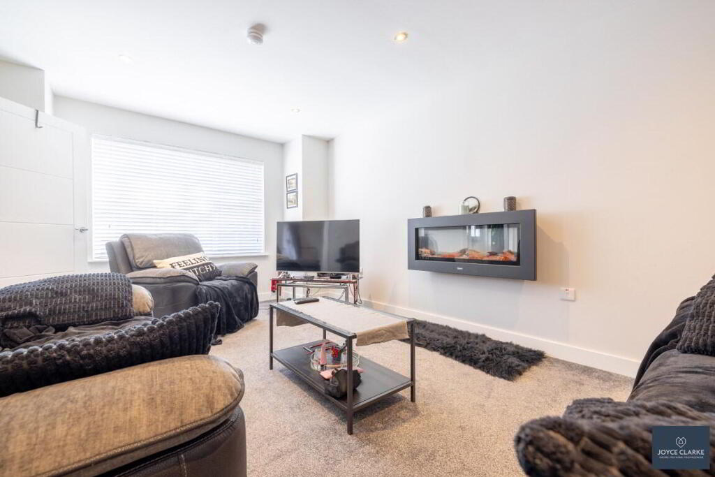 LIVING ROOM 3.38m x 5.12m (11' 1" x 16' 10") (MAX) Front aspect reception room. Wall mounted electric fire. TV point. Double panel radiator. Recessed lighting.