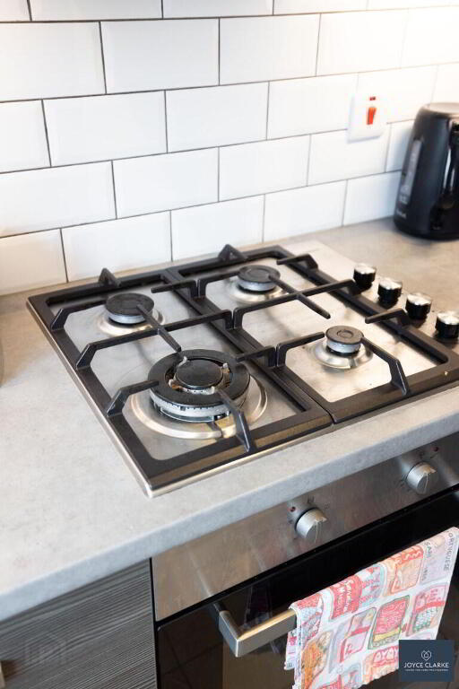 KITCHEN DINER 5.60m x 3.78m (18' 4" x 12' 5") (MAX) Range of high and low level kitchen cabinets with slab doors . Excellent range of appliances include electric oven, four ring gas hob with stainless steel extractor canopy above, integrated fridge freezer, dishwasher and washing machine. Gas boiler. Tiled flooring and splashback. Spacious dining area with sliding patio door giving access to rear garden. Recessed lighting. Double panel radiator.
