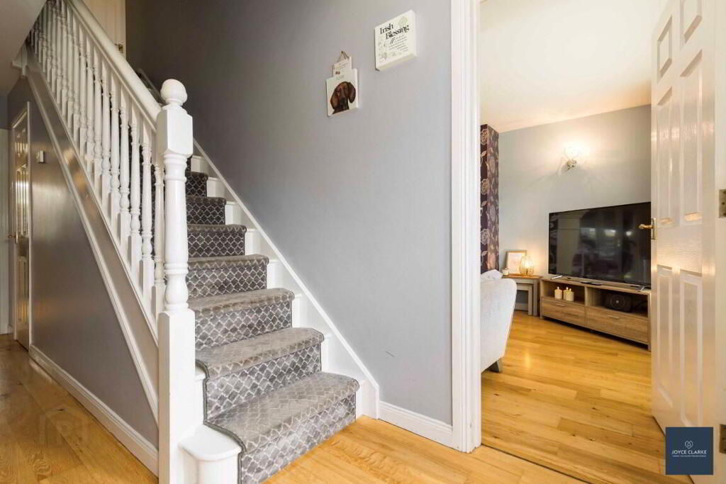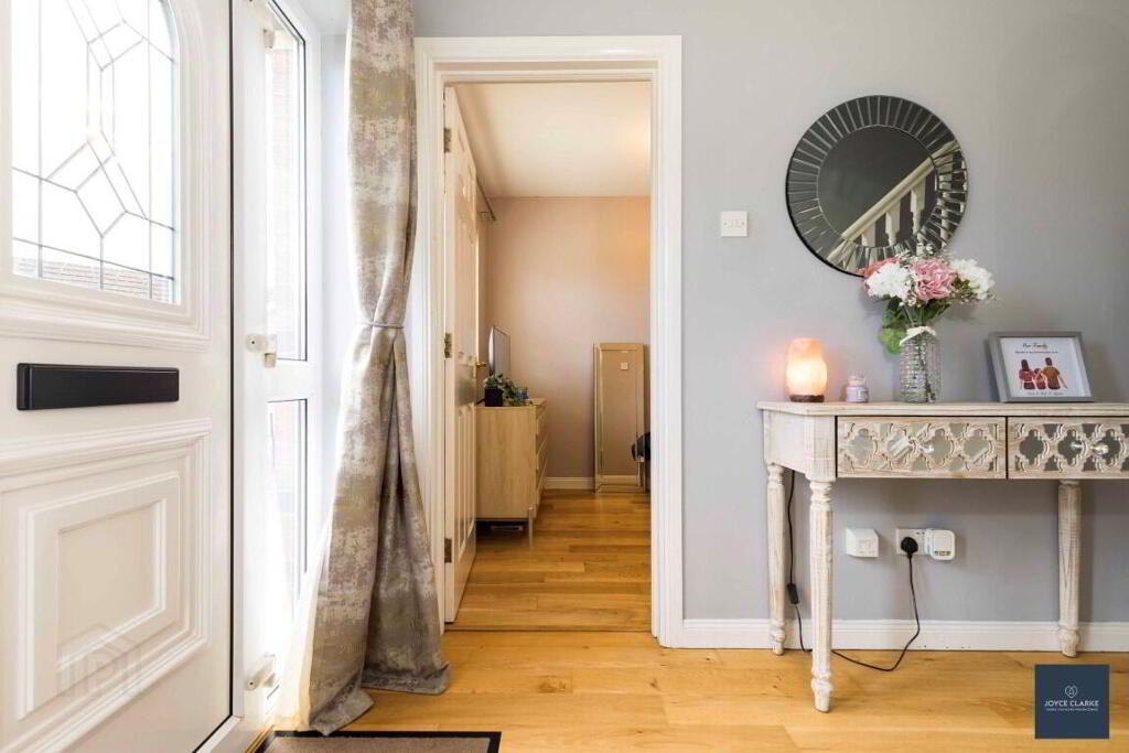 ENTRANCE HALL 5.38m x 1.80m (17' 8" x 5' 11") White UPVC entrance door with glazed panels to side. Oak flooring. Single panel radiator. Storage cupboard.