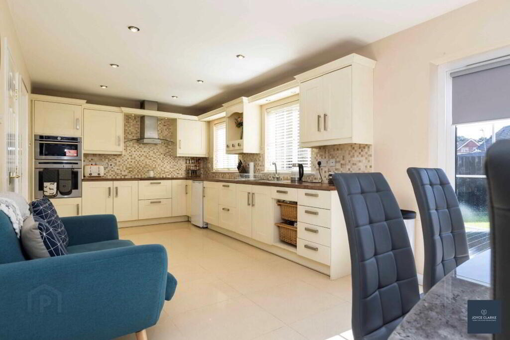 Beautiful kitchen with extensive range of units and integrated appliances open plan to dining