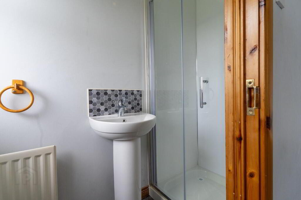 ENSUITE 0.92m x 2.16m (3' 0" x 7' 1") Shower enclosure with mains fed shower. uPVC wall panels. Pedestal style sink with mixer taps. WC. Single panel radiator. Window. Extractor.