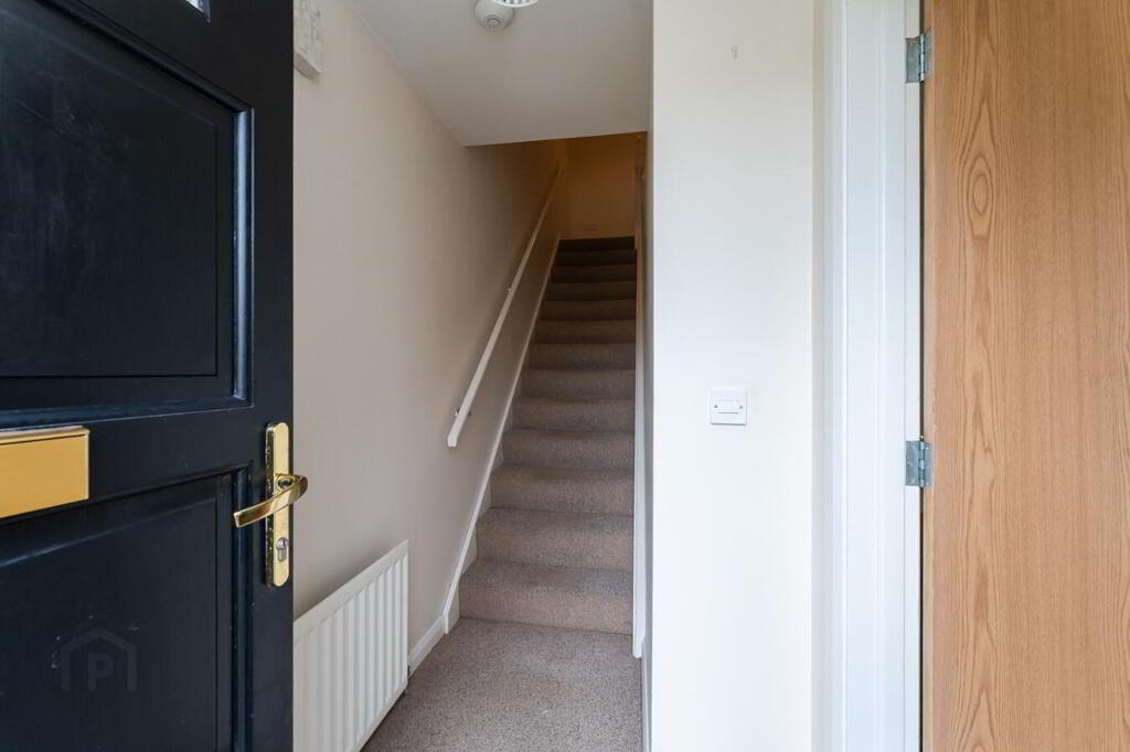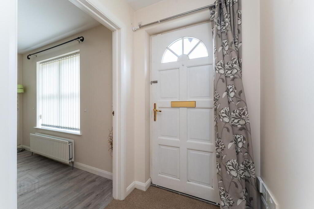 ENTRANCE HALL Solid wood entrance door. Single panel radiator. Alarm panel.