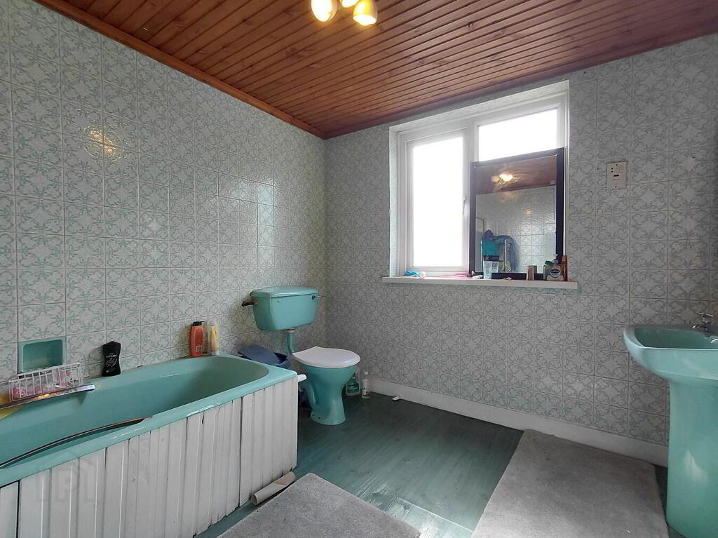 FAMILY BATHROOM 2.54m x 2.77m (8' 4" x 9' 1") Three piece bathroom suite comprising of panel bath with shower head attachment and shower screen, close coupled WC and wash hand basin with pedestal. Double panel radiator. Fully tiled walls. Wood effect vinyl flooring.