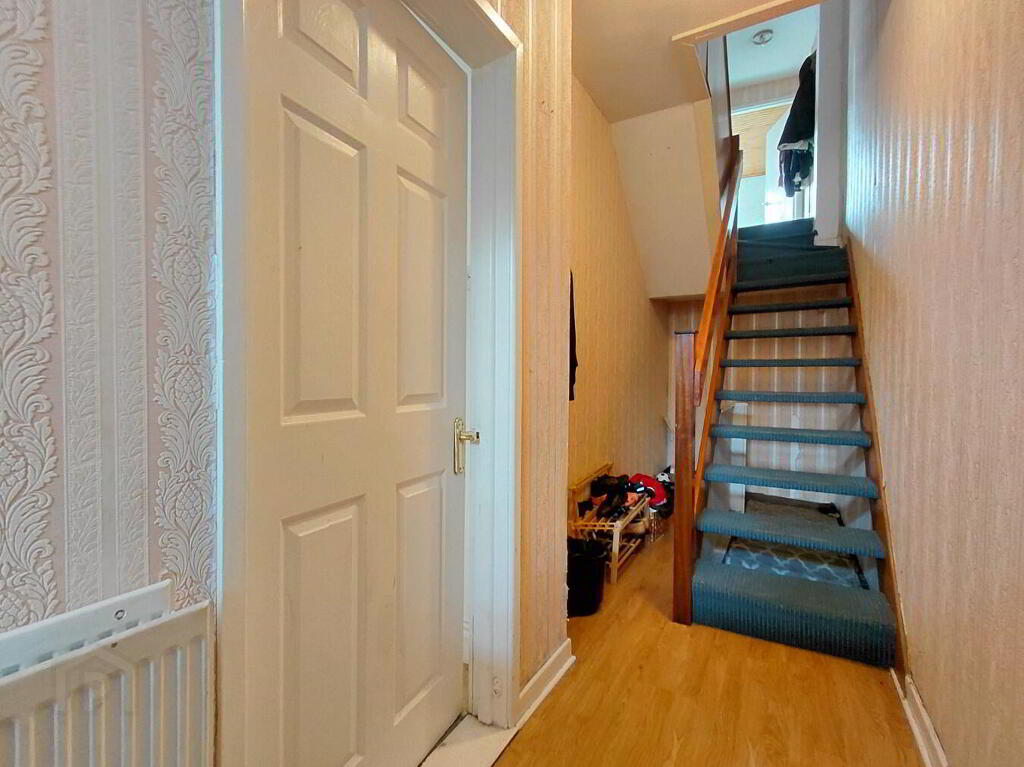 ENTRANCE HALL Composite entrance door with glazed panel above. Tiled porch area. Wood effeect laminate flooring to hall area. Double panel radiator.