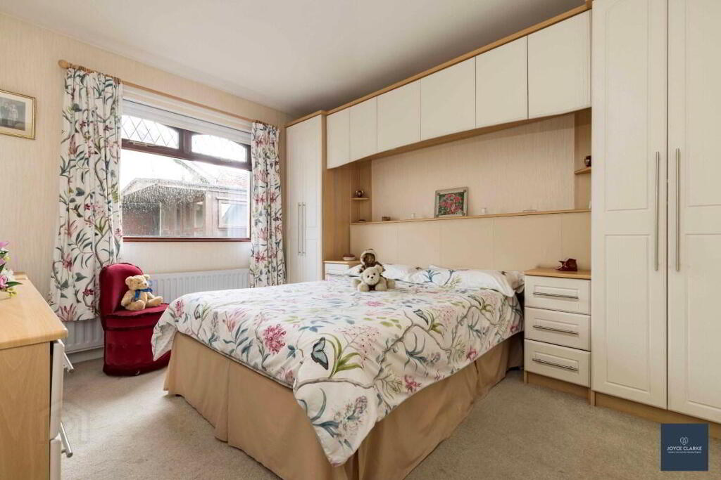 MASTER BEDROOM 3.18m x 3.63m (10' 5" x 11' 11") Rear aspect double bedroom with range of fitted bedroom furniture including, wardrobes, cupboards and bedside cabinets. Dressing table and set of drawers. Double panel radiator.