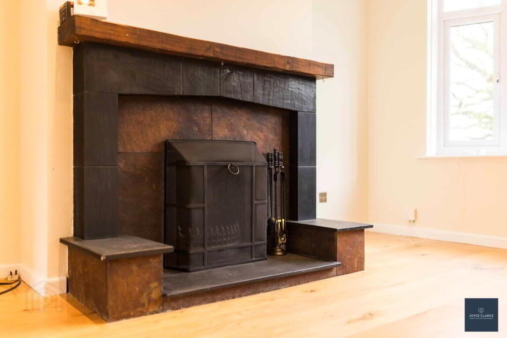 LIVING ROOM 3.69m x 3.78m (12' 1" x 12' 5") Front aspect reception room with attractive bay window. Feature fireplace with tiled surround and hearth, beam mantel. Double panel radiator. Recessed lighting. Wooden flooring. TV point. Hallway leading to dining room.