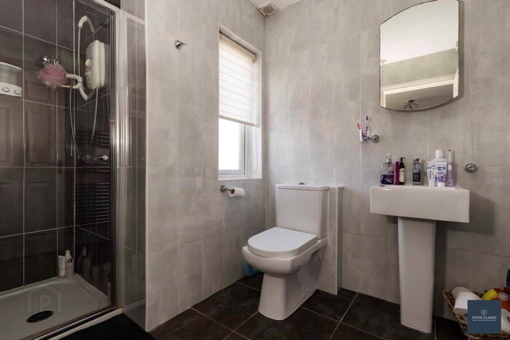 ENSUITE 2.03m x 1.66m (6' 8" x 5' 5") Three piece suite comprising of tiled shower enclosure with Mira Sport electric shower. Dual flush WC. Wash hand basin with pedestal. Heated towel rail.