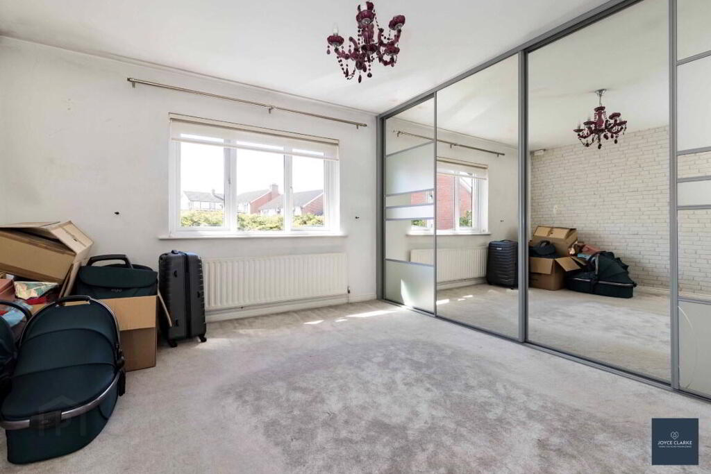 BEDROOM TWO 3.89m x 3.50m (12' 9" x 11' 6") Rear aspect double bedroom. Carpeted. Single panel radiator. Built in storage closets. TV and power points.