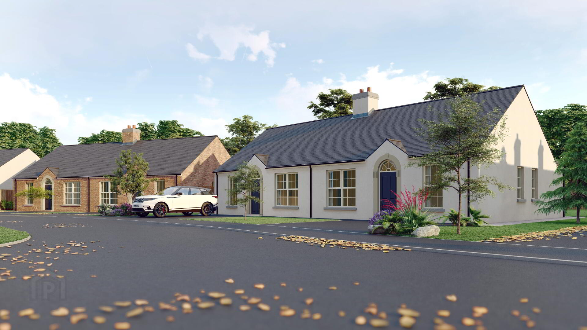 - A mix of brick and render finishes to complement the traditional design